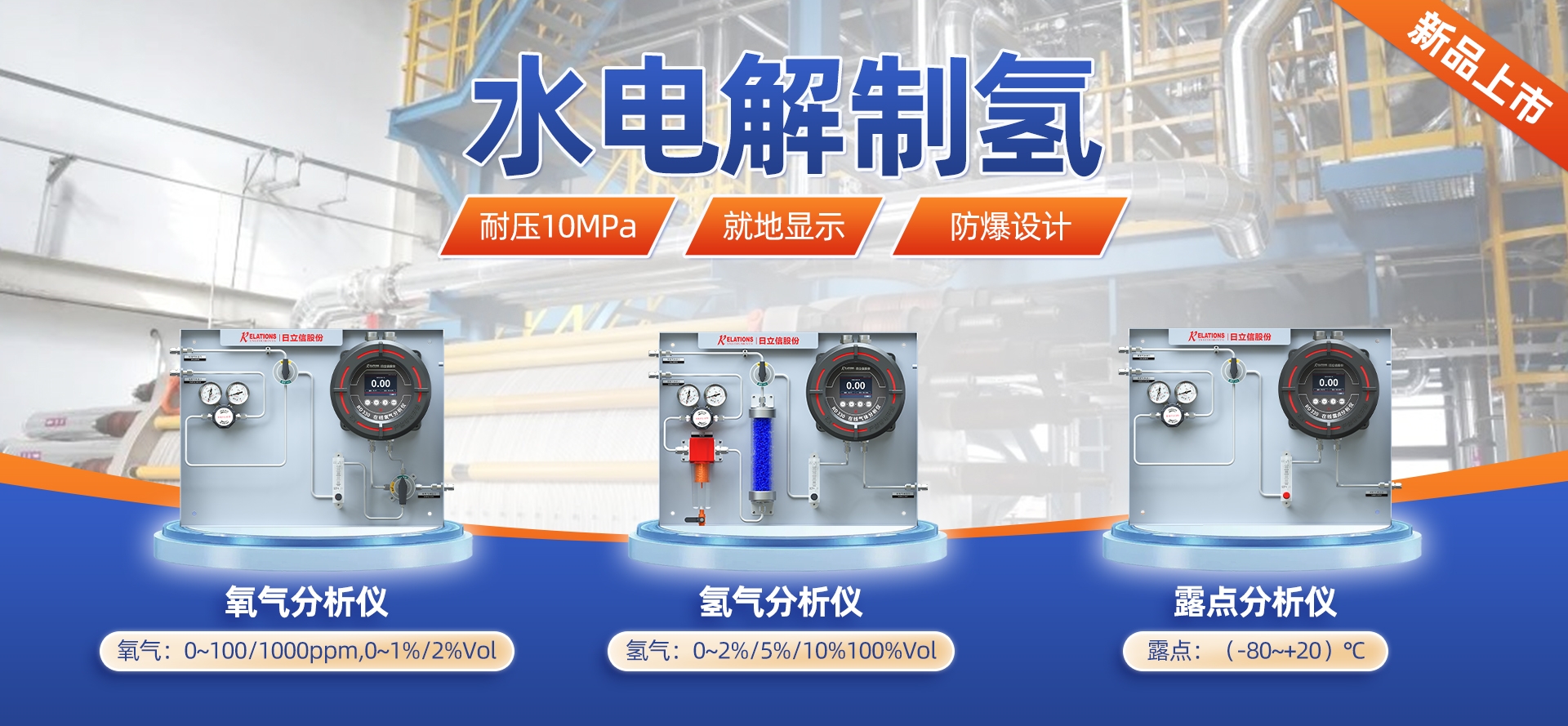 電解水、天然氣、氫分裂制氫,輸氫管道、氫氣置換,制氫站、加氫機、卸氣柱、撬裝站、氫燃料電池汽車及系統(tǒng)測試臺架、熱電聯(lián)供、氫滲氫實驗室、涉氫生產(chǎn)廠房、氫氣氣瓶間等場合中的氫氣濃度、純度、濕度檢測。